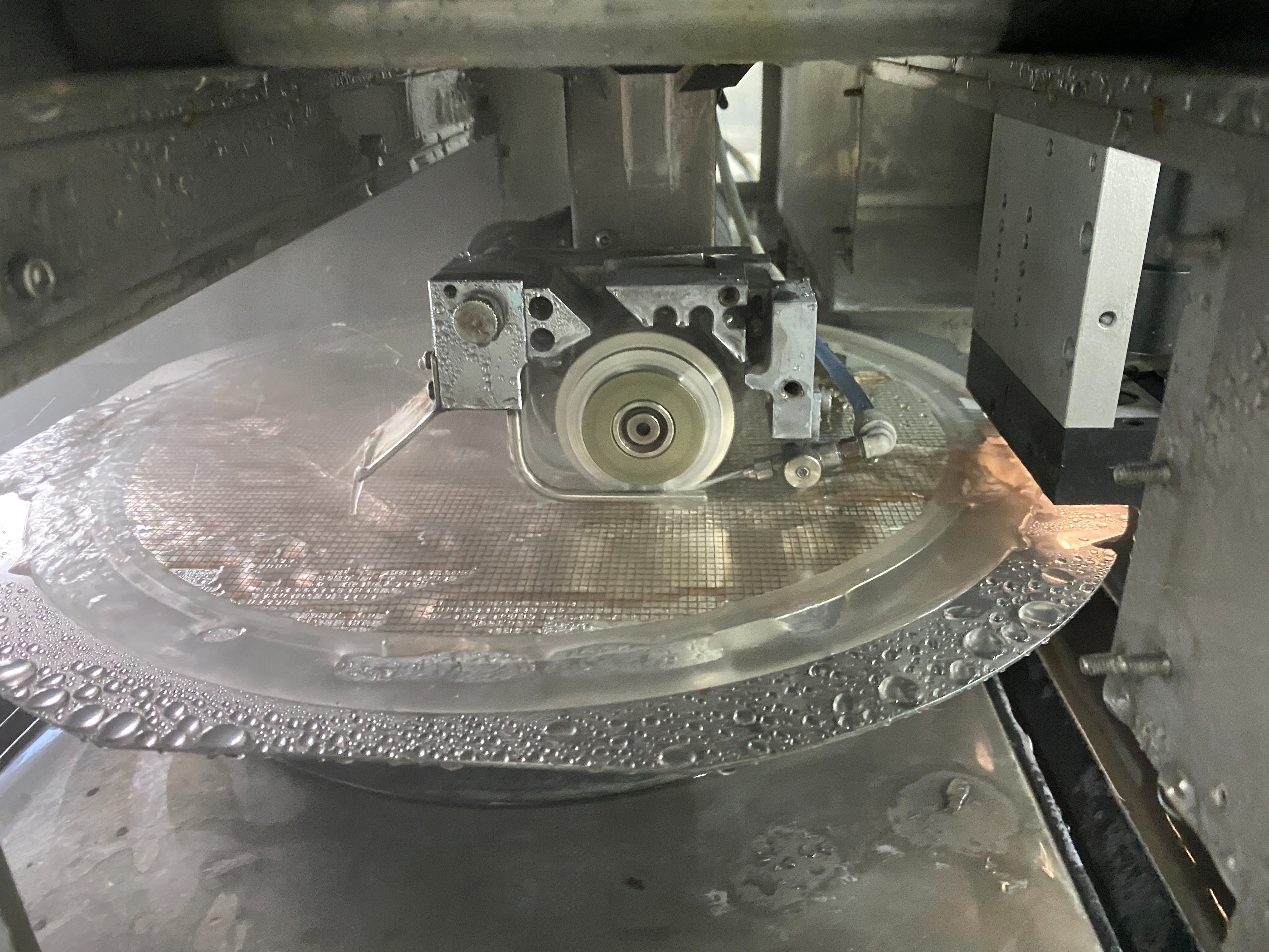 2. 主軸轉速(影響切割效率與崩邊) 主軸轉速越高,切割越順暢,崩邊風險越低,單位為rpm(轉/分鐘)。新手選型參考:入門級機型(4-6英寸晶圓)3萬-4萬rpm即可;中端機型(6-8英寸晶圓)4萬-6萬rpm;高端機型(12英寸晶圓、SiC切割)需8萬rpm以上。需根據自身加工材料的硬度、厚度匹配轉速,比如厚硬材料需更高轉速。博捷芯入門級機型主軸轉速可達3萬-4萬rpm,高端機型最高可達8萬rpm以上,搭配空氣靜壓高速主軸,兼顧切割效率與穩定性,有效降低崩邊風險。
