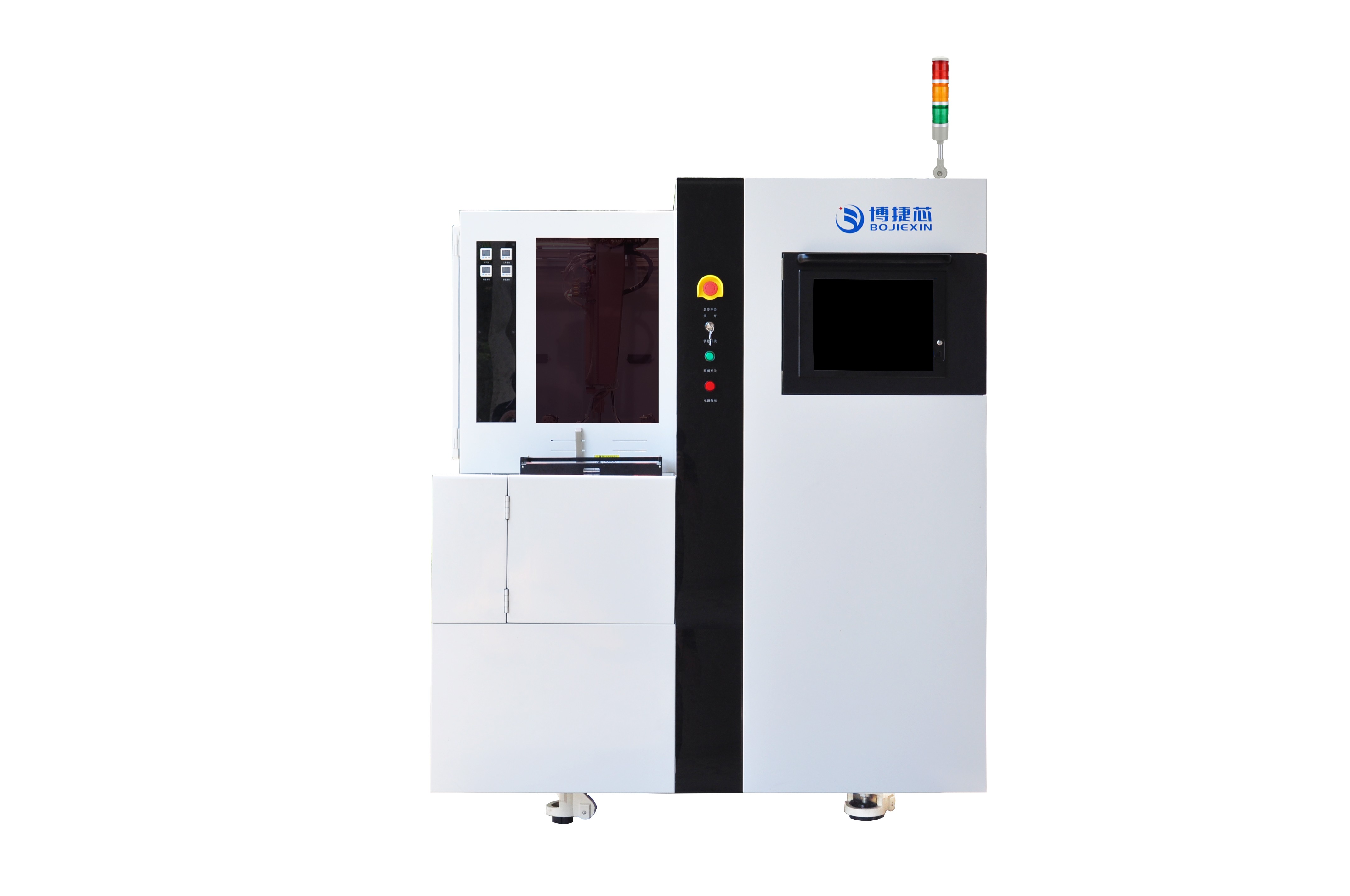 視覺對準系統借助高分辨率CCD相機與AI算法識別切割道,補償晶圓翹曲,定位重復精度達±0.3μm;運動控制系統依托高精度線性馬達等部件,將切割位置誤差控制在±1μm內;冷卻除塵系統通過去離子水或真空吸附,有效防止晶圓變形、清除切割碎屑,全方位筑牢切割精度防線。博捷芯在輔助系統上持續優化,其生產的劃片機直線度達1.5μm,定位精度可達2μm,最大速度600mm/s,性能超越國際標準,適配多場景生產需求。
